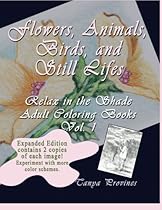 Flowers, Animals, Birds, and Still Lifes Expanded Edition (Relax in the Shade Adult Coloring Books) (Volume 1) . Values of light to dark in the line drawings allow the colorist to practice blending and shading. Included are 24 beautiful images with plenty of room provided to add your own ideas. Both portrait a